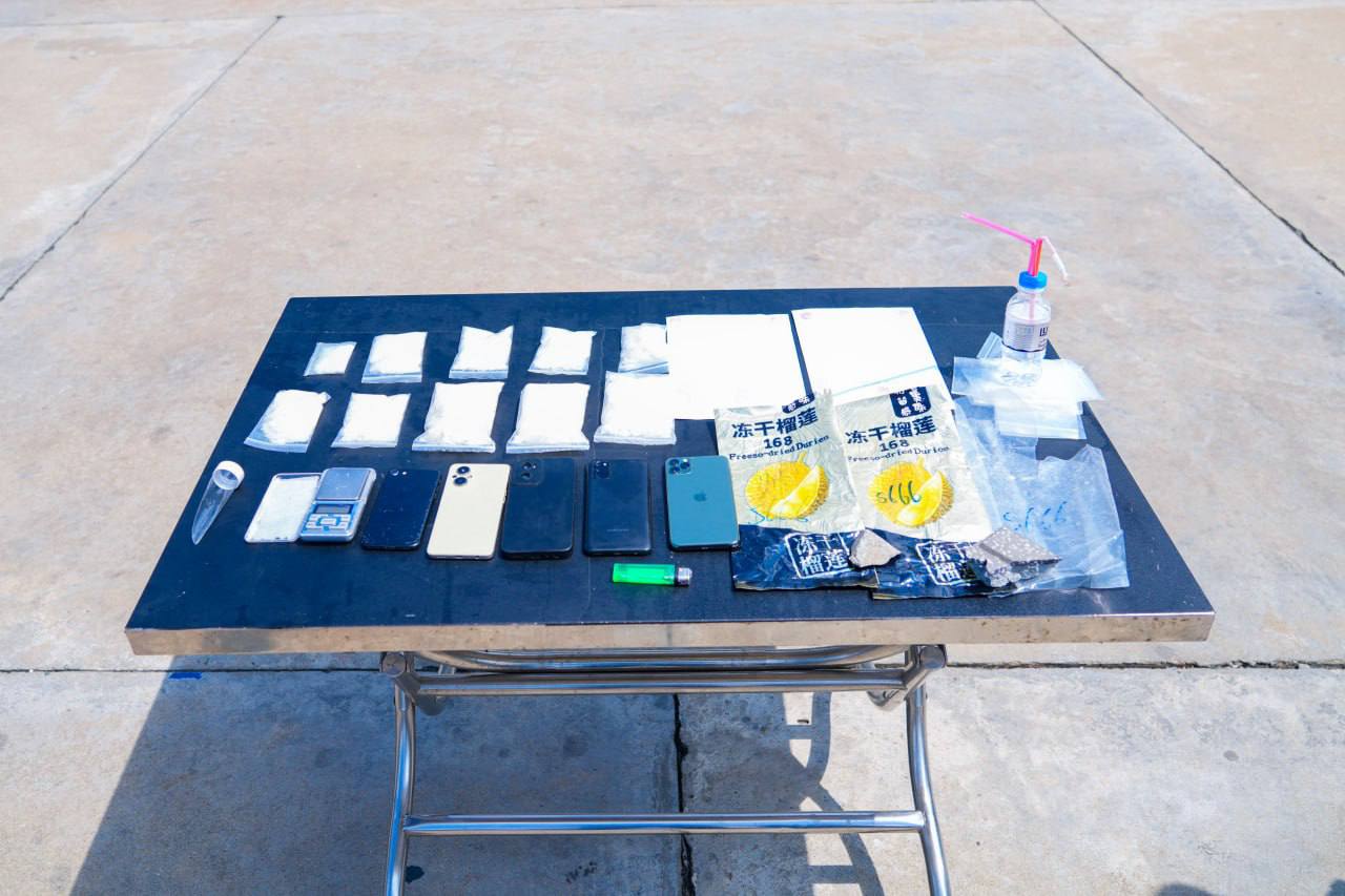បន្ទាប់ពីបើកការស្រាវជ្រាវអស់រយៈពេលជាច្រើនថ្ងៃមក នៅថ្ងៃទី២៧ ខែមីនា ឆ្នាំ២០២៦ កម្លាំងជំនាញការិយាល័យប្រឆាំងបទល្មើសគ្រឿងញៀន នៃ កងរាជអាវុធហត្ថរាជធានីភ្នំពេញ សហការជាមួយ កម្លាំងមូលដ្ឋានអាវុធហត្ថខណ្ឌពោធិ៍សែនជ័យ និងខណ្ឌកំបូល បានចុះបង្រ្កាប និងឃាត់ខ្លួន ជនសង្ស័យចំនួន០៤នាក់ ជាបន្តបន្ទាប់ ពាក់ព័ន្ធករណីជួញដូរដោយខុសច្បាប់នូវសារធាតុញៀន នៅចំណុចលើផ្លូវបេតុង ភូមិត្រពាំងថ្លឹង សង្កាត់ចោមចៅទី១ និងបន្ទប់ជួលគ្មានលេខ ភូមិទួលពង្រ សង្កាត់ចោមចៅទី២ ខណ្ឌពោធិ៍សែនជ័យ និងចំណុច ផ្ទះជួលលេខ១៣(បុរីML) ភូមិកំបូល សង្កាត់កំបូល ខណ្ឌកំបូល និងបន្តទៅឆែកឆេរនៅចំណុច បន្ទប់ជួលលេខ១៤ ភូមិកំបូល សង្កាត់កំបូល ខណ្ឌកំបូល រាជធានីភ្នំពេញ។ វត្ថុតាងចាប់យករួមមាន ៖ ម្សៅក្រាមសថ្លាចំនួន ១៦កញ្ចប់ ស្មើនឹងទម្ងន់ (៦៩៤,៨៨ក្រាម), ជញ្ជីងអេឡិចត្រូនិកសម្រាប់ថ្លឹងចំនួន០១គ្រឿង, ឧបករណ៍សម្រាប់ប្រើប្រាស់គ្រឿងញៀន ចំនួន ០១ រួមនឹងសម្ភារមួយចំនួនទៀតផងដែរ។