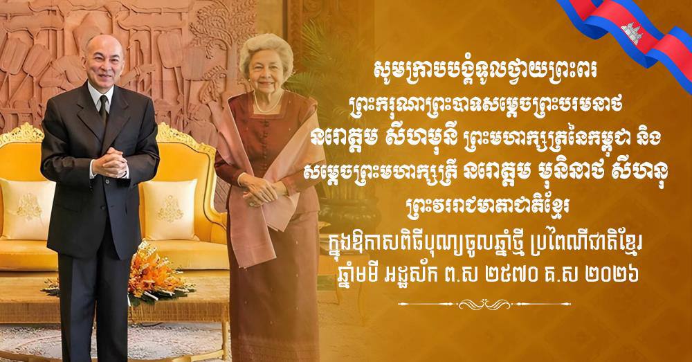 ទូលព្រះបង្គំជាខ្ញុំ រ័ត្ន ស្រ៊ាង មេបញ្ជាការរងកងរាជអាវុធហត្ថលើផ្ទៃប្រទេស និងជាមេបញ្ជាការកងរាជអាវុធហត្ថរាជធានីភ្នំពេញ សូមព្រះបរមរាជានុញ្ញាត ក្រាបបង្គំទូលថ្វាយព្រះពរ ព្រះករុណាព្រះបាទសម្តេចព្រះបរមនាថ នរោត្តម សីហមុនី ព្រះមហាក្សត្រនៃកម្ពុជា និងសម្ដេចព្រះមហាក្សត្រី នរោត្តម មុនិនាថ សីហនុ ព្រះវររាជមាតាជាតិខ្មែរ ជាទីគោរពសក្ការៈដ៏ខ្ពង់ខ្ពស់បំផុត នៅក្នុងឱកាសពិធីបុណ្យចូលឆ្នាំថ្មី ប្រពៃណីជាតិខ្មែរ ឆ្នាំមមី អដ្ឋស័ក ពុទ្ធសករាជ ២៥៦៩ ត្រូវនឹងថ្ងៃទី ១៤-១៥-១៦ ខែមេសា ឆ្នាំ២០២៦ សូមព្រះអង្គទ្រង់ប្រកបដោយព្រះកាយពលរឹងមាំខ្លាំងក្លា ព្រះបញ្ញាញាណភ្លឺថ្លាត្រចះត្រចង់ ព្រះរាជសុខភាពល្អបរិបូរណ៍ ព្រះជន្មាយុយឺនយូរជាងរយព្រះវស្សា ចាកផុតពីព្រះរោគាព្យាធិ ដើម្បីព្រះអង្គទ្រង់គង់ប្រថាប់នៅក្នុងព្រះបរមសិរីរាជសម្បត្តិ ជាព្រះម្លប់ដ៏ត្រជាក់ត្រជុំ សម្បូរសប្បាយ ចម្រុងចម្រើន ថ្កុំថ្កើងរុងរឿងរបស់មាតុភូមិកម្ពុជាជាទីស្នេហា និងប្រជានុរាស្ត្រ ដើម្បីបន្តព្រះរាជបេសកកម្មដ៏ឧត្តុង្គឧត្តម។